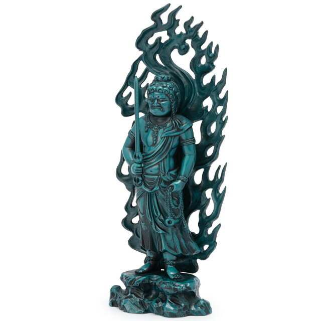 不動明王 合金製青銅色 21cm【牧田秀雲作】 高さ21cm×巾7.5cm【送料無料】【お盆 仏具 ブロンズ 仏像 不動明王像 合金製 青銅色】