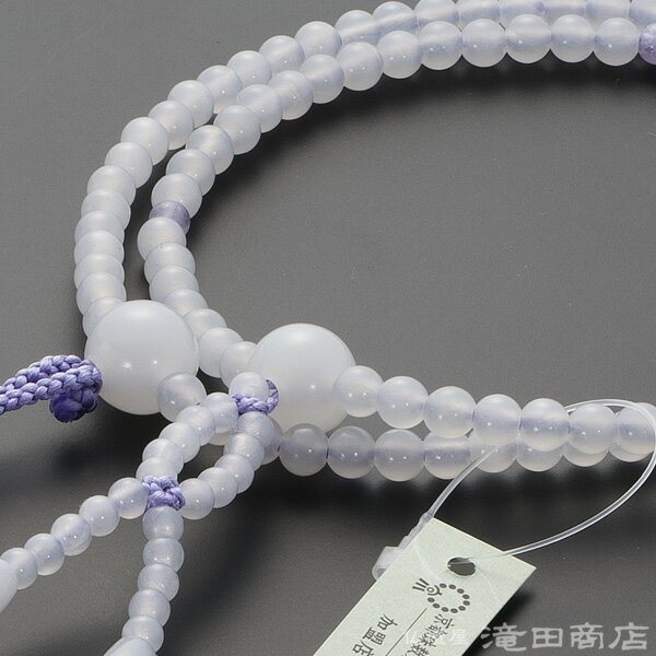 珠の数:主珠108個珠の素材:白オニキス 四天珠に紫雲石を使用房の素材:正絹華梵天房(藤色)サイズ:8寸サイズ宗派:日蓮宗の本式数珠備考:数珠袋付き 数珠は桐箱入り日蓮宗用の正式な女性用の念珠です。白オニキスの5mm玉を使用し、四天珠に紫雲石を使用しました。正絹の華梵天房がついています。大切なお数珠を携帯するのに便利な数珠袋をお付けいたします。数珠は桐箱に入れてお届けします。ご進物・プレゼント用のギフト包装を無料で承ります。お客様に代わり当店スタッフが心を込めて包装させていただきます。「志」、「御祝」、「記念品」などの、のし紙も無料でお付けすることができます。ご希望の方は備考欄にご記入ください。ギフト対応商品説明珠の数主珠108個珠の素材白オニキス四天珠に紫雲石を使用房の素材正絹華梵天房(藤色)サイズ8寸サイズ宗派日蓮宗の本式数珠備考数珠袋付き数珠は桐箱入り柔らかく透き通る乳白色が美しい白オニキスを使用し、アクセントに淡い藤色に薄くかかる白い色合いがまるで雲のように見える紫雲石を使用した女性用の日蓮宗用本式数珠です。艶めく白オニキスと、上品な落ち着きのある色合いの紫雲石の組み合わせはとても美しく、穏やかな気品ある印象を演出することが出来ます。華梵天房には高級素材の正絹を使用しております。京念珠製造師が匠の技で仕立てた逸品でございます。【珠の素材】白オニキス 主珠108個主珠…白オニキス(5mm)親珠…白オニキス(12mm)天珠…紫雲石(4mm)【石の力】◆白オニキス◆オニキスは邪念や悪い気を振り払い、理性を与えてくれる力があるとされています。前に進むための忍耐力や意思の強さを与えてくれる力もあるといわれています。「成功の象徴」とも呼ばれ、あきらめずにやり遂げるためのサポートをしてくれる石ともいわれています。◆紫雲石◆紫雲石はラベンダーアメジストとも呼ばれ、不安や迷いを取り除き、安らぎを与えてくれる力があるとされています。【房の素材】房のデザイン:正絹華梵天房房色:藤色◆正絹華梵天房 京都製◆蓮の花をイメージした美しく、しなやかな正絹華梵天房を使用しております。この正絹華梵天房は、軸部分の糸を梵天部分の芯に編み込むことで、軸部分と梵天部分の一体化に成功した丈夫で抜けにくい梵天房でございます。