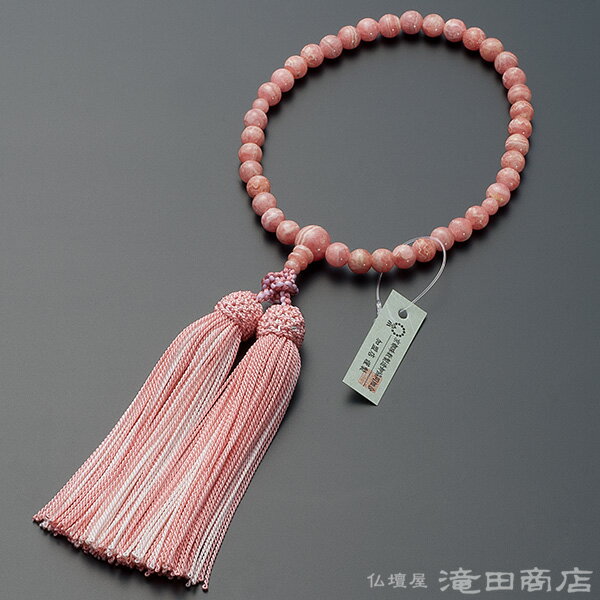 【数珠袋付き】 数珠 女性用 インカローズ(ロードクロサイト) 7mm玉 正絹頭付房 ブランド京念珠【送料無料】【レディース 婦人用 女性用数珠 略式数珠 頭房 パワーストーン じゅず お祝い 結婚 二十歳 ギフト 贈り物 法事 葬式 葬儀 法要】