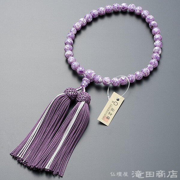 【数珠袋付き】 数珠 女性用 ラベンダーシェル 8mm玉 正絹頭付房 ブランド京念珠【送料無料】【お盆 レディース 婦人用 女性用数珠 略式数珠 片手数珠 パワーストーン じゅず ギフト 贈り物 法事 葬式 葬儀 法要】