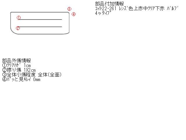 メーカー トヨタ 車名 クレスタ 型式類別 08628-0017 グレード 2000 エクシード 認定型式 E-GX100 車両タイプ 4ドアセダン 年式 H9/7 シフト 駆動 通称型式 エンジン型式 1G-FE ミッション型式 アクスル型式 車体色 白 車体色No 057 トリム色No YA40 走行距離(Km) 110,000 メーカー純正品番 81560-22840 部品メーカー品番 22-261 保証 0ヶ月/0km 付加情報 コイト22-261 レンズ色上赤中クリア下赤 バルブ4ヶタイプ,(1)クリアハゲ 1cm (2)擦り傷 1X2cm (3)全体小傷程度 全体(全面) (4)パッと見キレイ 0mm 商品情報 ※純正番号およびモデル番号は参考としてください。※リビルト部品を購入される際のお願い【再生部品】と表示されているものをリビルト部品と呼んでいます。リビルト部品の場合には、交換時に取り外した部品をご返却していただく場合があります。詳しくはこちら※大物商品(ドア・ボンネット・バンパー等)は個人宅への配送ができない場合がございます。その場合、最寄りの配送業者支店止め等の対応となりますので、あらかじめご了承ください。 ページ上部へ【中古】中古部品 クレスタ GX100 左テールランプ 【3330430100-000716739315600】