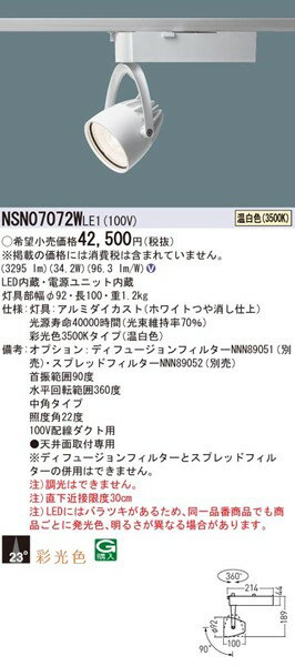 NSN07072WLE1 パナソニック ダクトレール用スポットライト ホワイト 中角 LED(温白色) (NSN07381WKLE1 相当品)