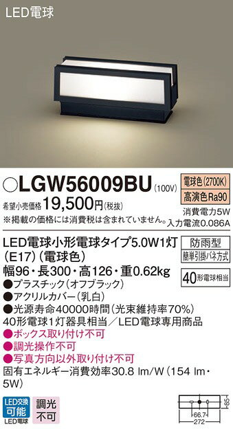 LGW56009BU パナソニック 門柱灯 ブラック LED(電球色) (LGW56009BF 相当品)