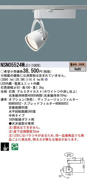 NSN05524WLE1 パナソニック レール用スポットライト ホワイト LED(電球色) 中角
