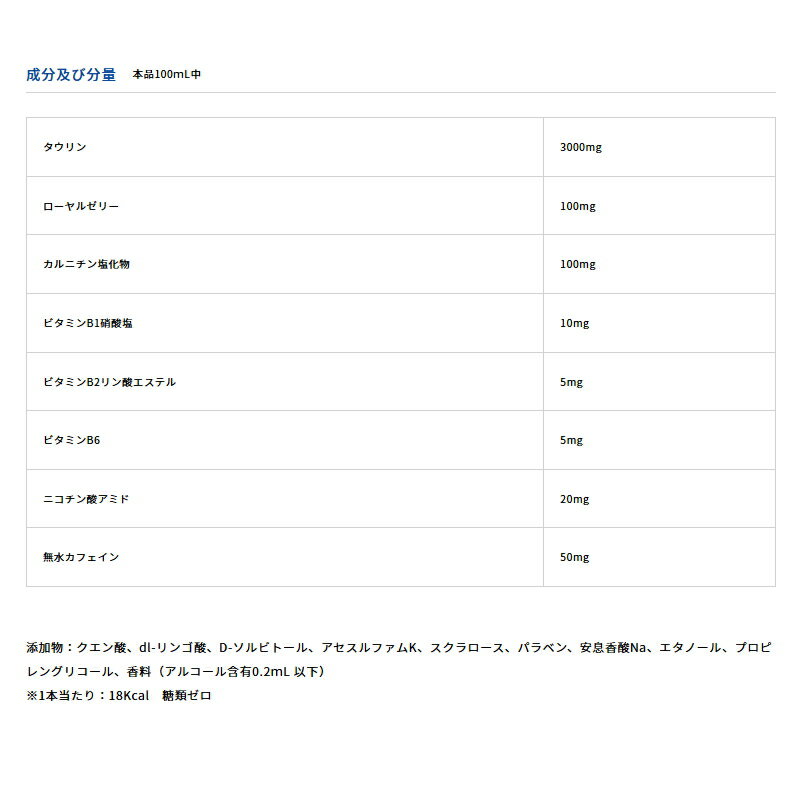 勝負の時に!ここぞ!!という時に金文字の「勝」がまぶしいこの1本。タウリン3000mg、ビタミンB群にローヤルゼリーもプラス!すっきり爽やかなピーチ風味。しかも糖類ゼロで低カロリー! 効能又は効果 滋養強壮、虚弱体質、肉体疲労・病中病後・食欲不振・栄養障害・発熱性消耗性疾患・産前産後などの場合の栄養補給。 用法及び用量 成人(15才以上)1日1回1本(100mL)服用