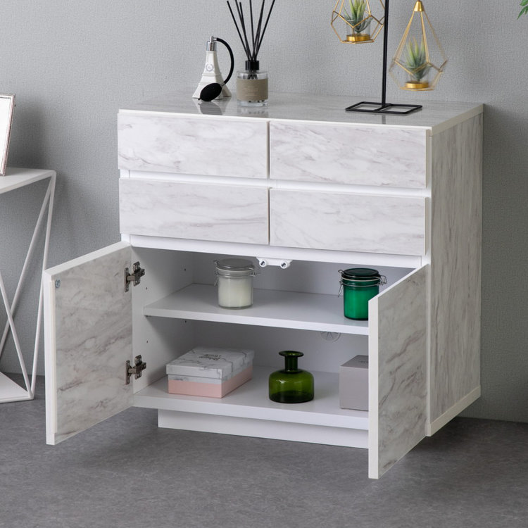 【期間限定1000円引き】幅70 キャビネット リビングボード サイドボード 収納棚 電話台 FAX台 ファックス台 Wi-Fi モデム ルーター 収納 リビング収納 大理石柄 引き出し 白 黒 完成品 基本送料無料 FACT ISSEIKI