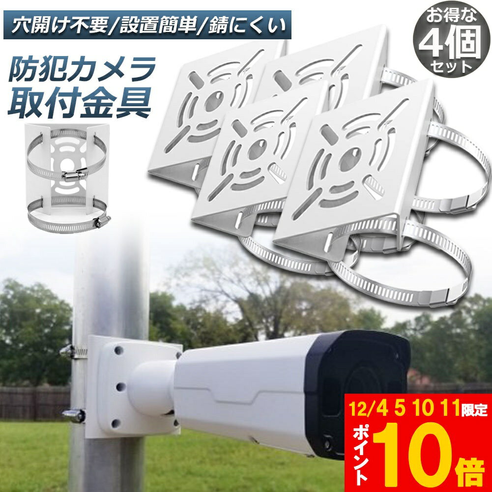 ★期間限定!ポイント5倍&10倍★防犯カメラ ポール 取付金具 4個セット ブラケット スタンド ハウジング 穴開け不要 監視カメラ ダミー ハウジング ブラケット円柱 角柱 屋外 設置 すぐ使える