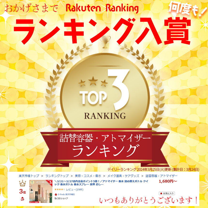 【6カラー】ブラック、ホワイト、ブルー、グリーン、ブラウン、ピンク【底部チャージで操作簡単】革新的な底部チャージデザインを採用し、スポイトなど補助的な工具が不要で、手が汚れず、数回のプッシュで補充でき、約10-15秒で補充完了します【漏れ防止・高密閉性】圧力バルブにより、空気圧の変動による液漏れを防ぎ、機内持ち込み可能です。噴射口は内蔵され、噴霧部分はアルミニウム合金の材質で作られ、底部は独特的な金属バルブ構造に加え、外層は堅牢な金属ケースを備えて高密閉性を実現し、液は漏れしにくいです【様々な場面で活躍】コンパクトなサイズでシャツのポケットや通勤バッグに入れ、気が向いた時にサッと出して使えます。高級感のあるカラーとシンプルなデザインを兼ね備え、男女を問わず違和感なくご利用いただけます。お出かけや会議、BBQ、焼肉、デート、スポーツ、テニス、ゴルフ、旅行、パーティー等いつでも手軽にプッシュできます【詰め替え方法】容量:5mlSTEP1、ご使用前に3-5回プッシュして、排気してくださいSTEP2、香水ボトルのスプレーヘッドとアトマイザ−外殻を外しSTEP3、差し込んだアトマイザー本体を上下に押して、漏れないように最大限4/5を目安に補充してください【ご注意】元の香水のノズルサイズ:1.香水キャップが取り外せるもの;2.香水のノズルの直径が2-5mm範囲内であるまの、長さの範囲が4mm以上;香水のノズルのタイプについて:直/円柱状は詰め替えできます;使用出来ない対象:香水のキャップが取り外せるないものとノズルが太いもの(5mm以上);ホーン状/きのこ状/傘状など、詰め替えができません。 ※発送方法について:お届け先、個数によって配送情報に記載の配送業者とは異なる場合がございます。日本郵便、または佐川急便(配送方法はご指定頂けません)でお届けいたします。