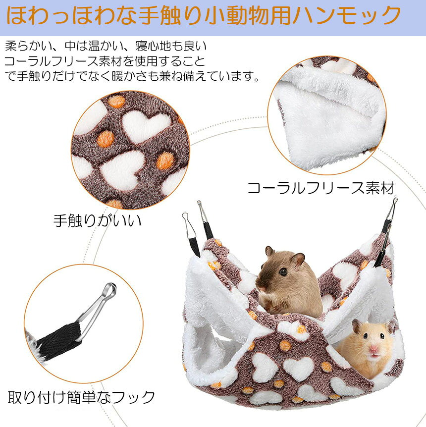 優良素材:フリース。柔らかなぬいぐるみの裏地付きの居心地の良いぬいぐるみで作られていま。 Sサイズ:20*20CM二重層のハンモックデザイン:柔らかな生地、中は温かい、寝心地も良い。二重ハンモック ハムスター 小鳥 ケージに掛けるベッド 小動物ベッド ぐっすり眠る 暖かい巣 クッションにも ハンギンング おもちゃ オウム、ハムスター、マウス、スナネズミ、ラットのハンモック省スペース:ケージのスペースを取らずに取り付けます小動物用ハウス うさぎ モルモット ハウス ベッド ブランコ ソファ チンチラ デグー 冬用 保温 あったか 寒さ対策。彼らは睡眠や内部再生するための安全で温かいあなたの小さな友人のために設計された理想的な場所。対象:ウサギ、フェレット、モルモット、チンチラ 小鳥など小動物。手触りの良いボアを採用し、ふわふわ暖かな感触。ハンモックにゆられてぬくぬく。取り付け簡単:ケージに吊し、その中に入って寝ると、ぐっすり寝ています。とっても暖かくて心地よています。ペットに質の高い睡眠環境をぐ作ることができます。 ハムスターやフェレット、モモンガ、シマリスなどの小動物に!フックがついているので、ケージにつり下げることができます。もちろん床置きも可 ※発送方法について:お届け先、個数によって配送情報に記載の配送業者とは異なる場合がございます。日本郵便、または佐川急便(配送方法はご指定頂けません)でお届けいたします。