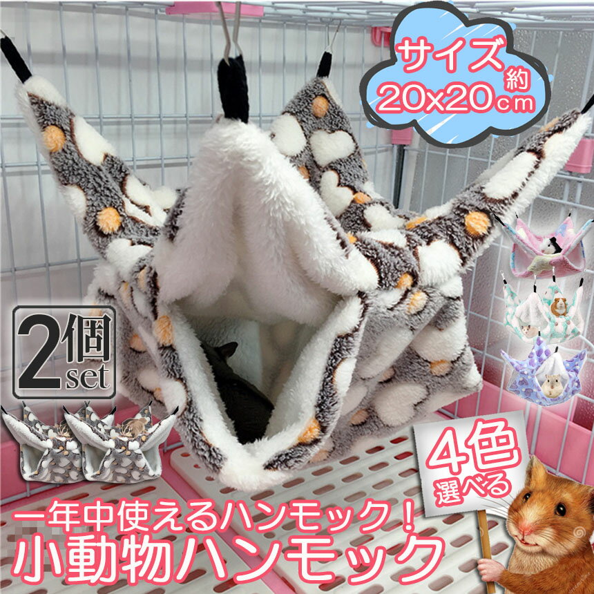 小動物 ゲージ ベッド ハンモック 2個セット 小動物ハンモック ハムスターハンモック 20x20cm モルモット ペットの家 デグー フクロモモンガ ハムスター マウス 小鳥 ハリネズミ フック付き 寝床 寝袋 暖かい 保温対策 ふわふわ