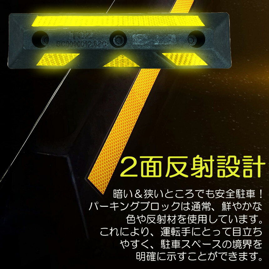 【2面反射】見やすいブラックカラーと2方向付いた黄色の反射シールが暗い場所での駐車をサポートします。これにより、運転手にとって目立ちやすく、駐車スペースの境界を明確に示すことができます。【安心安全】車庫や、駐車場に設置する、駐車時の車両への衝撃による損傷を軽減。 後ろの壁や障害物を気にせず駐車できます。【耐久性】 丈夫なゴム素材で作られています。これにより、長期間の使用に耐えることができます。耐久性が高いため、経済的な選択肢としても魅力的です。【タイヤにやさしい】弾性と強度を備えたゴム素材を採用、ゴム製なので、コンクリートや木製のストッパーよりタイヤに優しいです。【幅広い用途】アスファルト、砂利、コンクリート、凹凸のある表面で使用できます。普通車、トラック、バンなどに使用されます。保管または入口の停留所、倉庫、商業駐車場、またはショッピングモールに最適です。【サイズ】 サイズ(約):幅59cm×奥15cm×高さ9.5cm /アンカー穴(約):Φ35mm・内側Φ(約)15mm※発送方法について:お届け先、個数によって配送情報に記載の配送業者とは異なる場合がございます。日本郵便、または佐川急便(配送方法はご指定頂けません)でお届けいたします。