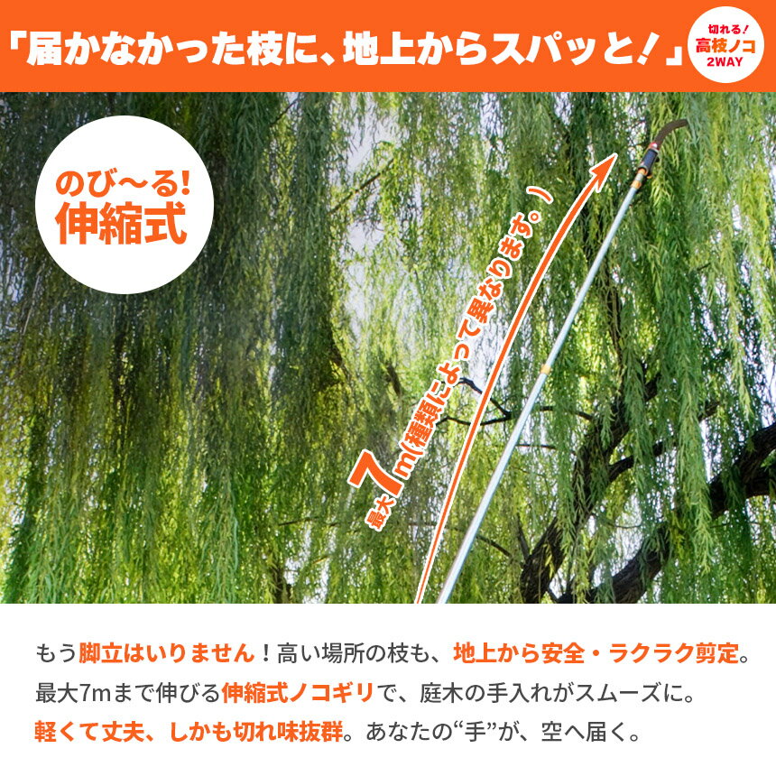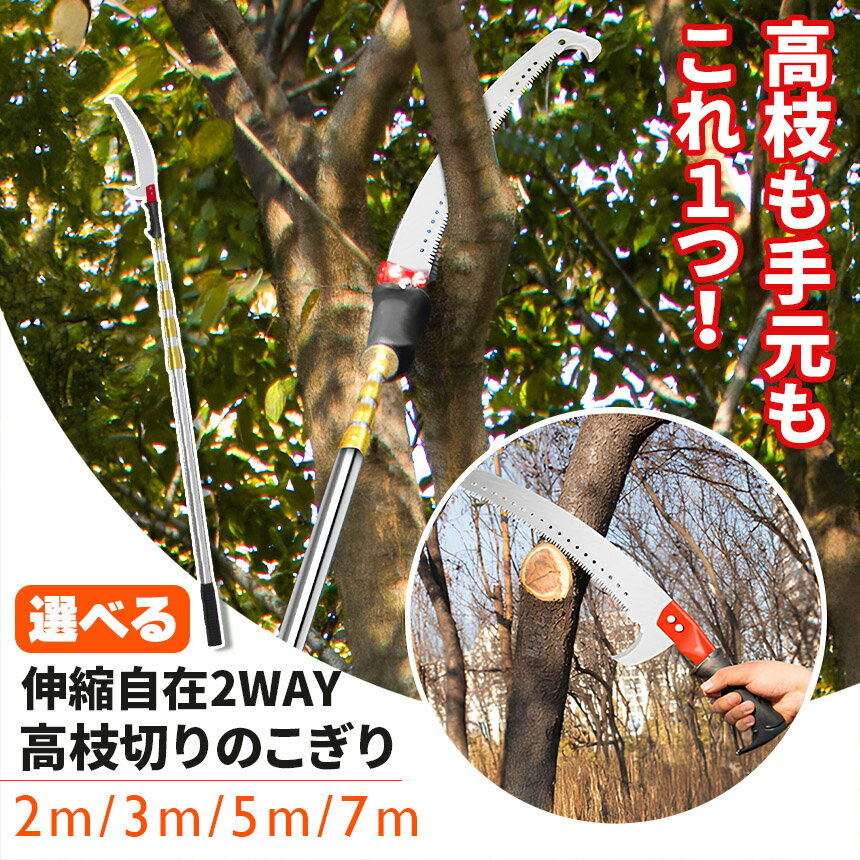 高枝ノコギリ 伸縮式 高枝切りノコ 切断のこぎり 高枝切りバサミ 高枝鋸 2.1m 3m 5m 7m 伸縮ポール 枝切り 剪定 園芸用品 庭木 果樹 剪定のこぎり 高所作業 枝打ち 伐採 軽量 庭 手動剪定 ガーデニング用品