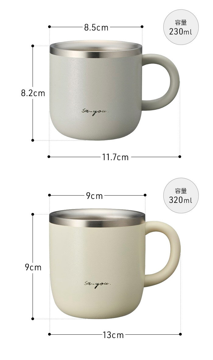 類似商品はこちらコーヒーマグ マグ キントー 大人可愛い コー2,200円マグカップ ハサミ カリタ スタッキングマグ 1,100円 有田焼 マグカップ 大きい 陶磁器 珈琲 コ5,500円◆ 楽天1位 ◆ マグカップ イブキクラフト 1,980円マグカップ 日本製 コーヒーカップ オシャレ 1,210円ステンレスマグ 保冷 保温 ブルーノ BRUN2,200円~◆ 楽天1位 ◆ キントー カップ 耐熱 耐熱880円~ ミルクパン ホーロー 片手鍋 ih ホーロー3,300円コップ マグカップ セット コーヒー 珈琲 2,970円 ON℃ZONE オンドゾーン 白湯専科 マグカップ / マグカップ クイックプチ マグカップで始める白湯習慣。沸かしたての熱湯を、すばやく冷まして飲み頃にしてくれる、魔法のようなマグカップ。ステンレス鋼に吸熱剤を入れることにより、内部の温度をぐんぐん吸収し、約3分で飲める温度に。白湯だけでなく、忙しい朝の淹れたてコーヒー、寝る前のホットミルクも、このマグに入れれば欲しい時にすぐ愉しむことができます。 【p2】 白湯専用マグカップ 保温マグ 温度ゾーン 230ml 320ml ウイックプチ さゆ 白湯生活 温活生活 ステンレスマグカップ マグボトル カップ コップ おしゃれ シンプル ギフト グレー アイボリー ピンク コーヒー スープ 紅茶 マイカップ ON℃ZONE オンドゾーン 白湯専科マグカップ ステンレス製ボトル ステンレス製ボトル タンブラー 保温 温活 かわいい 吸熱剤入り すぐ冷める OZSM230GY OZSM230IV OZSM230PB OZSM320GY OZSM320IV OZSM320PB キャンプ アウトドア プレゼント 母の日 父の日 敬老の日 猫舌 誕生日 贈り物 大きめ 可愛い シンプル 北欧 デザイン 女性 男性 男女兼用 レディス メンズ ユニセックス 記念品 機能性 取っ手 二重構造 便利グッズ 熱湯 白 キッチン雑貨ON℃ZONE オンドゾーン 白湯専科 マグカップ / マグカップ クイックプチ ( 保温 230ml 320ml マグカップ ) DETAIL COLOR 商品名 ON℃ZONE オンドゾーン 白湯専科 マグカップ / マグカップ クイックプチ 品番 / JAN [ 230ml ] グレー:OZSM230GY / 4550668129897 アイボリー:OZSM230IV / 4550668129903 ピンクベージュ:OZSM230PB / 4550668129910 [ 320ml ] グレー:OZSM320GY / 4550557504774 アイボリー:OZSM320IV / 4550557504781 ピンクベージュ:OZSM320PB / 4550557504798 サイズ [ 230ml ] 約 横幅8.5cm × 奥行き11.7cm(持ち手込み) × 高さ8.2cm [ 320ml ] 約 横幅9cm × 奥行き13cm(持ち手込み) × 高さ9cm 容量 230ml / 320ml 重量 [ 230ml ] 約 255g / [ 320ml ] 約 275g 材質 本体:ステンレス鋼(吸熱剤入り)/ 取っ手:ポリプロピレン 製造国 中国 備考 ※電子レンジでの加熱はしないでください。 ※飲み物の量は水位線以上に入れないでください。 ※続けて使用する際には、しばらく時間をあけるか水を入れて吸熱剤を冷やしてください。吸熱剤が常温に戻らないと、吸熱性が下がります。 ※本体をつけ置き洗いしないでください。 ※本体の洗浄に食器用洗浄機・食器用乾燥機を使用しないでください。 ※においの強いものを入れると、本体ににおいが残る場合がありますが、品質上問題はありません。 マグカップで始める白湯習慣。沸かしたての熱湯を、すばやく冷まして飲み頃にしてくれる、魔法のようなマグカップ。ステンレス鋼に吸熱剤を入れることにより、内部の温度をぐんぐん吸収し、約3分で飲める温度に。白湯だけでなく、忙しい朝の淹れたてコーヒー、寝る前のホットミルクも、このマグに入れれば欲しい時にすぐ愉しむことができます。 ギフトバッグラッピングは こちら キッチン総合 ランキング