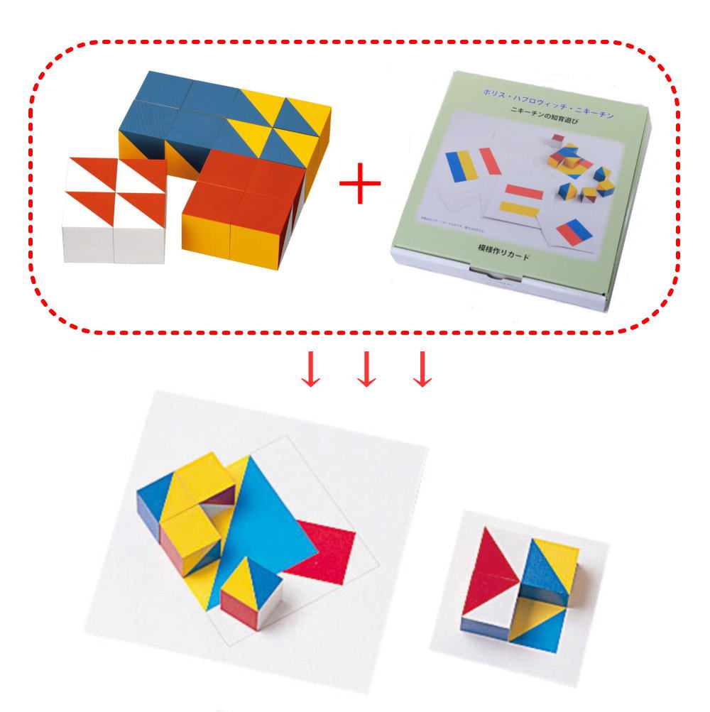 ニキーチン模様づくり 積み木とカードのセット 模様づくり積木 BJ0005 模様づくりカード BJ0025 ブロック 学習玩具 右脳 脳トレ リハビリ 頭の体操 おもちゃ 知育遊び 知育玩具 脳活