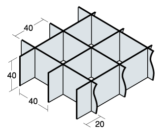 アルミルーバー 天井ルーバー 天井格子 40mm LGA-40-40W シルバー 960mm x 960mm