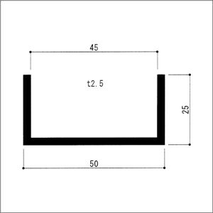 アルミチャンネル チャンネル材 2.5x50(内寸45)x25x4000mm アルマイトシルバー コの字 C型 コ型 アルミフレーム 枠 DIY アルミ汎用型材 【※サービスカット対応商品です】