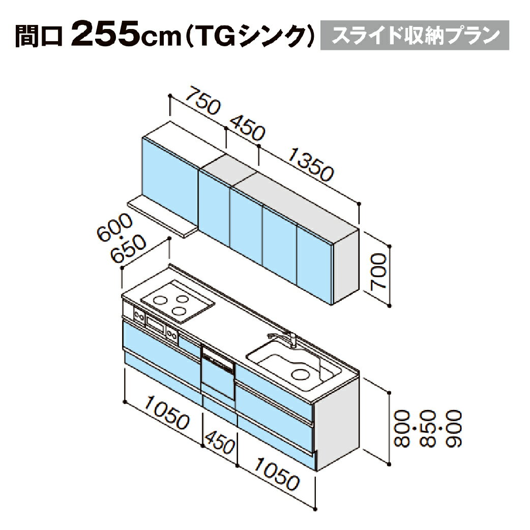 クリナップ システムキッチン ラクエラ W2550 スライド収納 TGシンク 食洗機付プランコンフォート I型 収納もたっぷり メーカー直送 納期約2週間
