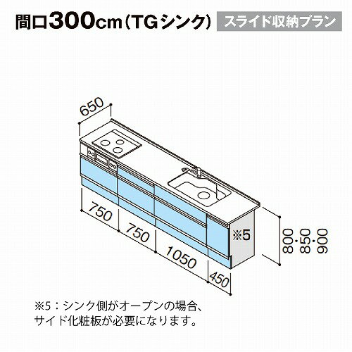 【最大5000円OFFクーポン配布中】クリナップ システムキッチン ラクエラ 下台のみ W3000 スライド収納 TGシンク シンシア I型 収納もたっぷり メーカー直送 納期約2週間