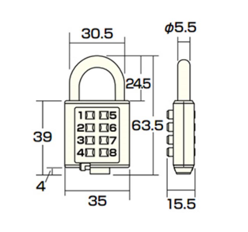 特徴1〜8の数字から、異なるお好きな番号を設定して注文できる! プッシュボタン式南京錠タイプの簡単錠です。ダイヤル式より使いやすい! ボタンを押すだけの簡単解錠タイプ。4桁の解除番号で開錠するプッシュボタン式のデジタル南京錠。 幅広いシーンに使用可能。 ポンポンとボタンを押すだけで、開錠!暗がりでも手探りで開けられます。とても簡単!子カギをなくす心配もないです。用途郵便ポスト、ゴミ集積場、門扉などの鍵に最適、マンション、ロッカー、会社、共用部分侵入防止用にも最適材質本体&ボタン/亜鉛ダイカストクロームメッキ仕上 ツル/真鍮製クロームメッキ仕上ツル(吊)タイプ標準番号仕様4桁のお好きな番号(1〜8の異なる4つの番号)※ご注文の際備考欄に4桁の1〜8の異なる4つの番号をご明記の上ご注文をお願い致します。