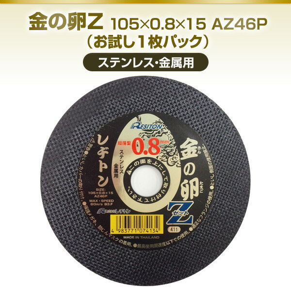 金の卵Z 0.8 105×0.8×15 AZ46P (お試し1枚パック) ステンレス・金属用 砥石 切る といし 切断 ステンレス切断 グラインダー レヂトン 【送料無料】