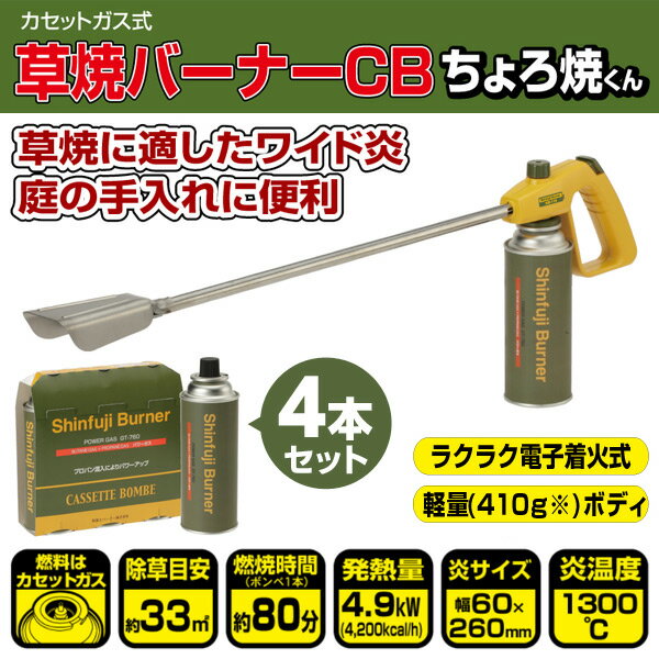 草焼バーナーCB ちょろ焼くん パワーガス4本セット KB-110/GT-7601 Kusayaki ガーデニング ワイド炎 電子着火 安全 火起こし 芝焼き 新富士バーナー 【送料無料】