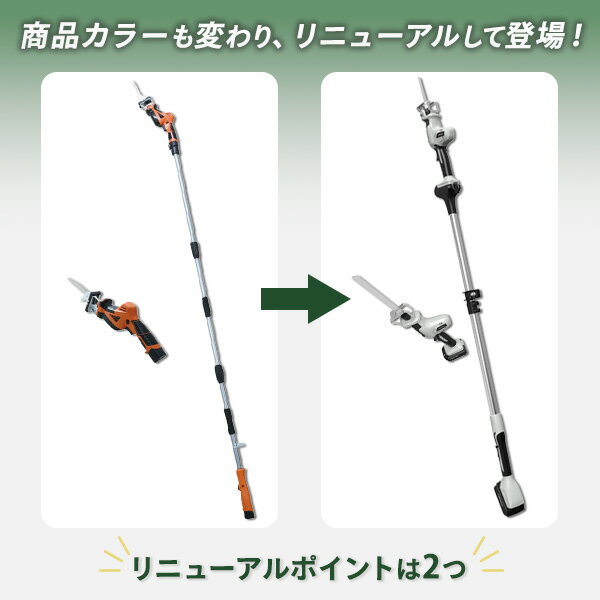 山善 YAMAZEN 10.8V コードレス 高枝2WAYガーデンポールソー 2.5Ahバッテリー付属 全長167-231cm 着脱式伸縮延長ポール のこぎり PS-1025 本体サイズ 全長167-231cm×全幅6.8cm×高さ11.8cm 重量2.4kg 仕様 ●原産国:中国 商品説明 ●定格電圧:10.8V●ストローク数:2500min-1●ストローク長:約20mm●最大切断能力:庭木約80mm※枝の種類、使用環境などで異なります●無負荷連続作業時間:約40分●バッテリー:2.5Ah リチウム電池●充電時間:約120分●充電入力:UBS充電type-C DC 5V/2A,9V/2.5A,12V/2.5A(最大30W)●電源を気にせず、どこでも高枝切りができるリチウムイオンバッテリー2.5Ah式●高い枝の切断には167〜231cmまで伸縮可能なポールを取り付けて使用するのが最適●付属の枝キャッチャーを使用すれば細い枝の切断も簡単※20mm以上の太い枝は枝キャッチャーを外してご使用ください●低い木の枝や切断した枝のカットなどは本体のみでの使用が最適。トリガースイッチでスピード調節も可能●枝切刃:中国製●枝切刃の仕様:(刃渡り)210mm、(ピッチ)3mm、(板厚)0.9mm、無電解ニッケルメッキ、衝撃焼入れ●枝切刃は生木や枝用の剪定用ブレードですので、金属・レンガ・プラスチックなどには使用しないでください。●肩掛けベルトや保護メガネ付属で剪定作業をしっかりサポート●付属品:本体一式、2.5Ah リチウムイオンバッテリー×1、充電用USBケーブル(type-C to C)×1、枝切刃210mm×1、枝キャッチャー×1、保護メガネ×1、肩掛けベルト×1、取扱説明書※2025年10月より充電式の「LPS-1025」からコードレスタイプ・専用バッテリー式の「PS-1025」に変更しております。それに伴い無負荷連続作業時間が約50分から約40分に変更となります。 商品補足説明 YAMAZEN ヤマゼン 山善 通販 ガーデニング 剪定 庭 園芸 強力 電動 スチール stihl 替え刃 替刃 作業用品 高枝切り 目立て 粗大ごみ 粗大ゴミ チェンソー 電気チェーンソー 電動チェーンソー チェーンソーアート チェン チェンソ 材木 丸太 切断 枝払い 枝木 丸太 伐採 薪割り 切断工具 電動ノコギリ 鋸 万能ノコギリ 万能のこぎり 軽量 高枝切りばさみ 高枝切りバサミ 高枝切鋏 太枝切りバサミ 太枝切りばさみ 太枝切鋏 剪定バサミ 超軽量 伸縮 草刈器 充電草刈機 草刈り 刈払 芝刈機 芝刈 切断工具 ヘッジトリマー 岡田金属工業 ゼット販売 ゼットソー Z 解体 分解 机 大型 小型 多目的 替刃 替え刃 粗大ごみ 粗大ゴミ 大掃除 整理 植木 作業用品 おしゃれ スペア コンパクト工具 diy DIY ごみ 建築道具 大工用品 大工道具 土木作業 水道屋 水道工事 配管工事 配管切断用 ホビー クラフト プレゼント ギフト 贈り物 新築 リフォーム リノベーション 解体作業 造作仕事 電気工事 レシプロソー セーバーソー 交換刃 交換用刃 柱の切断 荒切り作業 際切り作業 壁 フローリング コンパネ 窓開け作業 家具 インテリア 竹 塩ビパイプ 硬質パイプ プラスチック プラスティック 電気工事 既設配管 配管切断 鉄管 鋼管 足場用単管 ALC 耐火二層管 硬質樹脂 S7C47 PSマークについて PSマーク種類 PSE(丸形):特定電気用品以外の電気用品 届出事業者名 株式会社 山善この商品の説明書はこちら(pdfファイル) 今ならお得!会場こちら 10.8V専用バッテリー 18V共通バッテリーシリーズ 剪定機器 ランキング