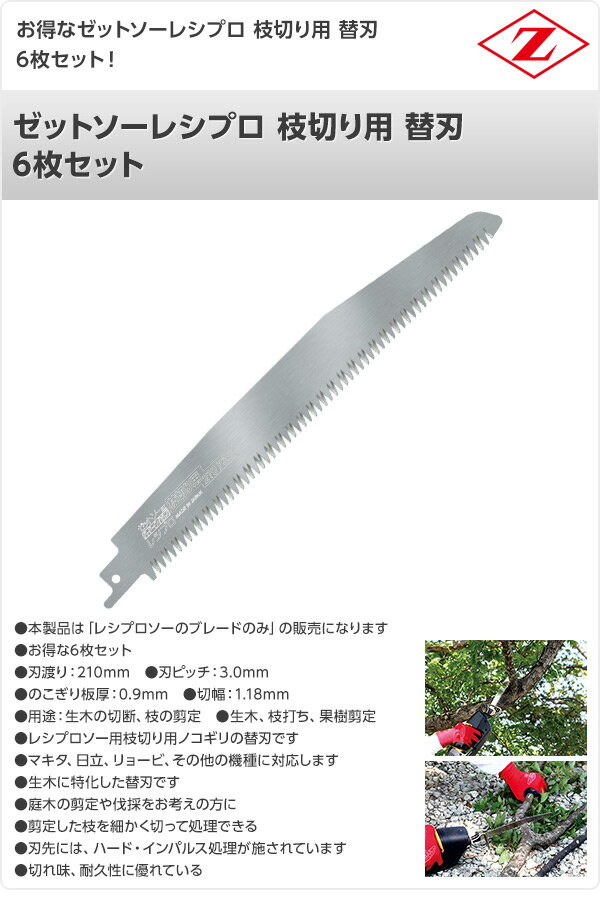 ゼットソーレシプロ 枝切り用 替刃 6枚セット 20103*6 電動鋸刃 レシプロソー用 セーバーソー用 替刃 替え刃 生木 枝 ゼット販売 【送料無料】