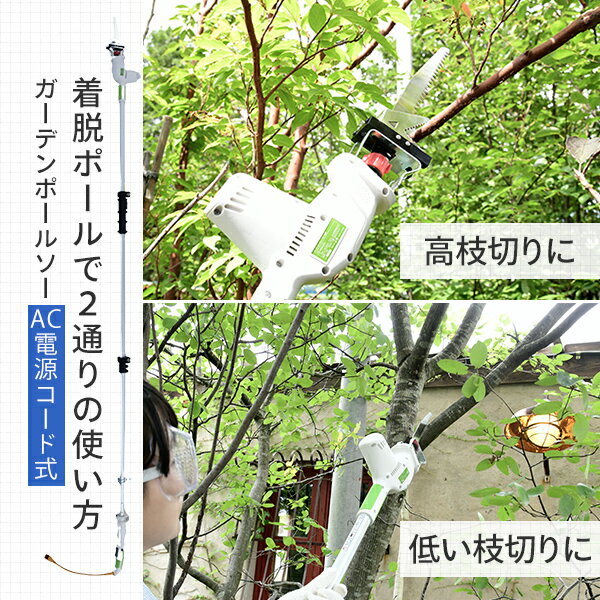 高枝ガーデンポールソー AC電源 最大長さ3m 着脱式伸縮延長ポール 延長コード10m付き PS-3000 高枝切りバサミ 高枝切りばさみ 高枝ばさみ 高枝チェーンソー 高枝チェンソー 剪定 枝切 竹切 軽量 山善 YAMAZEN 【送料無料】