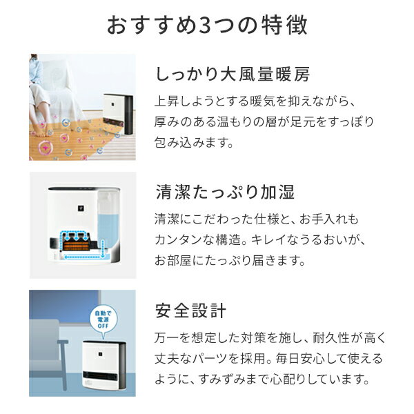 シャープ SHARP ファンヒーター 加湿セラミックファンヒーター プラズマクラスター 1200W 最大加湿量約650mL 抗菌加工操作パネル HX-TK12-W ホワイト 本体サイズ 幅42×奥行17.5×高さ42cm 重量5.5kg 商品説明 ●電源:AC100V(50/60Hz)●消費電力(50/60Hz)・強:1200W/1150W・強+加湿:1200W/1150W・弱:620W/610W・弱+加湿:620W/610W・加湿:570W/560W●加湿の適用床面積(目安)木造和室:11畳プレハブ洋室:18畳●プラズマクラスター適用床面積(目安):約6畳●二重安全転倒OFFスイッチ●タンク容量:約3.1L●電源コード長さ:約1.8m※2025年8月より型番をHX-TK12-Wへ変更しています。 商品補足説明 YAMAZEN ヤマゼン 山善 通販 山善 通販 暖房 暖房器具 暖房用品 冬物家電 足元暖房 セラミックヒーター ヒーター プラズマクラスター 加湿 シャープ SHARP T2B24電気暖房 ランキング