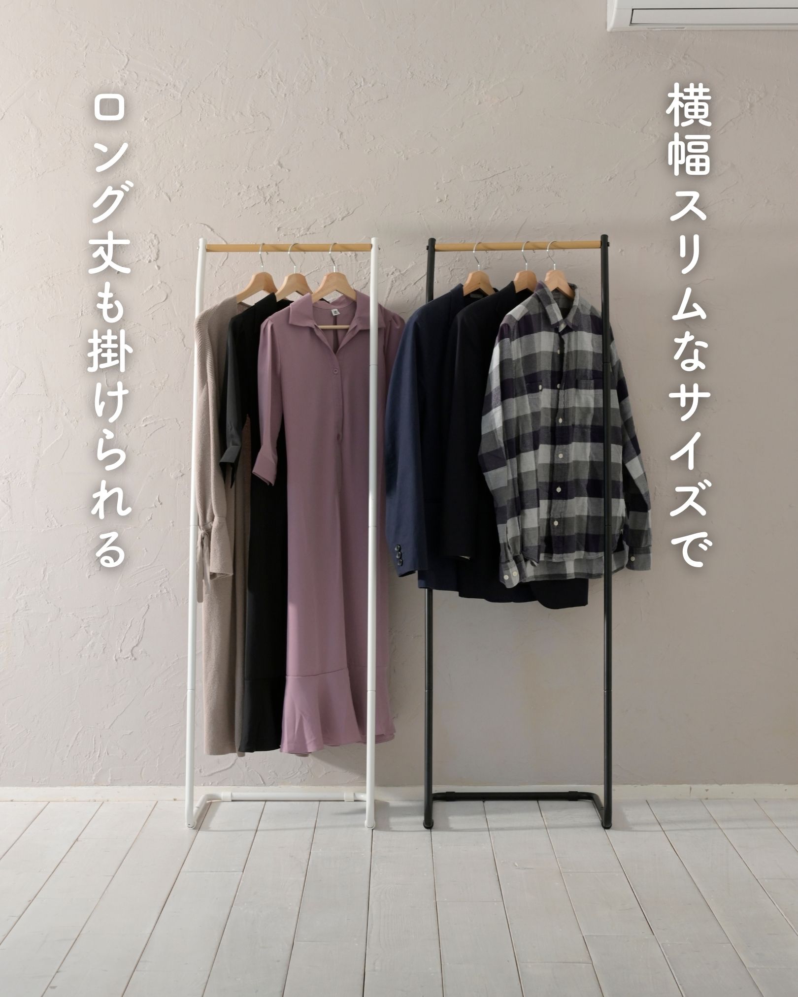 山善 YAMAZEN L型ハンガーラック シンプル 本体サイズ 幅46×奥行44.5×高さ145cm 重量2.5kg 材質 スチール(粉体塗装) 仕様 ●原産国:中国●組立品です●組立時間:約20-30分 商品説明 ※2025年9月よりグレージュ色が追加となります。●シンプルでスリムなハンガーラック●コートやワンピールを掛けられる、ロング丈対応モデル●玄関やリビング、寝室でも邪魔にならない質素な外観●軽いので使いたい場所へ移動もらくらく●ポールを一本外してキッズハンガーとしても使用可能●キッズハンガー時のサイズ: 高さ約105.5cm、床からハンガーパイプ上まで104、下まで102cm●耐荷重: 7kg●ハンガーバー内寸: 幅41 高さ142.5cm 商品補足説明 YAMAZEN ヤマゼン 山善 通販 ナチュラルインテリア 北欧インテリア 韓国インテリア 海外インテリア シンプルインテリア カフェ風インテリア インダストリアルインテリア 一人暮らし 一人暮らし部屋 一人暮らし女子 二人暮らし 同棲準備 賃貸インテリア 賃貸暮らし ハンガーラック スチールハンガー スチールハンガーラック コートハンガー コート掛け 洋服掛け ちょい掛け スーツ掛け 玄関 洗濯物干 室内物干し 部屋干し 玄関 リビング 子ども部屋 R8E38/WH T2J03/GG R8E37/BKその他のハンガーラックはこちらから インテリア ランキング
