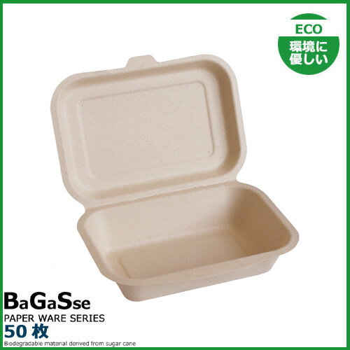 ■1枚あたり14.74円■テイクアウトや持ち運びに便利なフタと身が一体タイプの便利な食品容器です。■バガスを使用した、自然の風合いと手触り感が特徴の紙容器です。■素材に厚みがあり、手に持つと安定感があります。■燃えるゴミとして処理できる環境対応商品。■サトウキビから砂糖を搾った後の残りカスから精製された非木材系天然パルプ「バガス」を原料にした環境にやさしい紙製の容器です。 サイズ 約 縦125×横175×高さ38(嵌合時の高さ約50mm) 材質 バガス(非木材系天然パルプ)100% カラー ベージュ 数量 50枚 ●食品の長期保存には適しません。●オーブンには対応しておりませんのでオーブンでは使用しないで下さい。