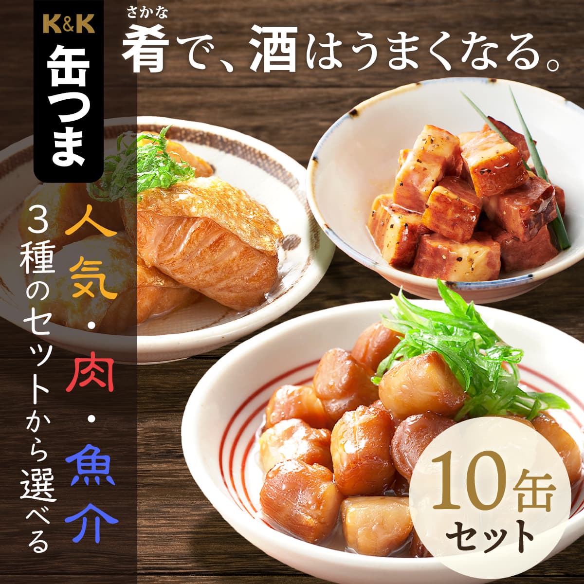 \ クーポン 配布中/ お歳暮 早割 缶つま 高級 缶詰 おつまみ 3種類の セット から 選べる 10缶 詰め合わせ 【 送料無料 沖縄以外】 国分 K&K おつまみセット 酒のつまみ 肉 魚 魚介 つまみ 惣菜 常温保存 非常食 保存食 贈り物 プレゼント 2025 内祝い ギフト