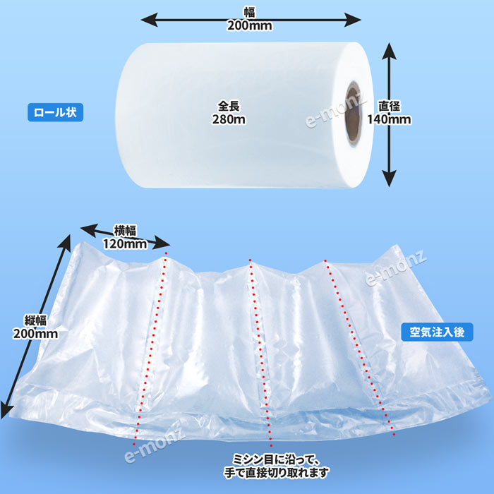 [インボイス対応!] エアー緩衝材 ロール エアピー専用 【 E301B 】 バブルタイプ 280M 120mm×200mm エアーパッキン エアークッション エアーキャップ エアー 梱包材 包装資材