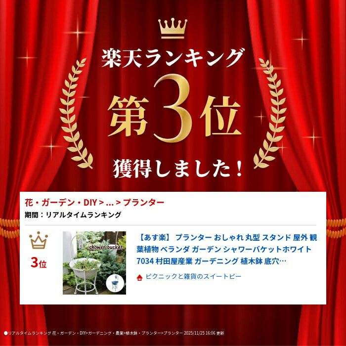 【あす楽】 プランター おしゃれ 丸型 スタンド 屋外 観葉植物 ベランダ ガーデン シャワーバケットホワイト 7034 村田屋産業 ガーデニング 植木鉢 底穴あり ポット 鉢 アイアン 金属 ツール アイテム グッズ 雑貨 庭 菜園 ポタジェ 園芸 玄関 自宅 家 ナチュラル 寄せ植え