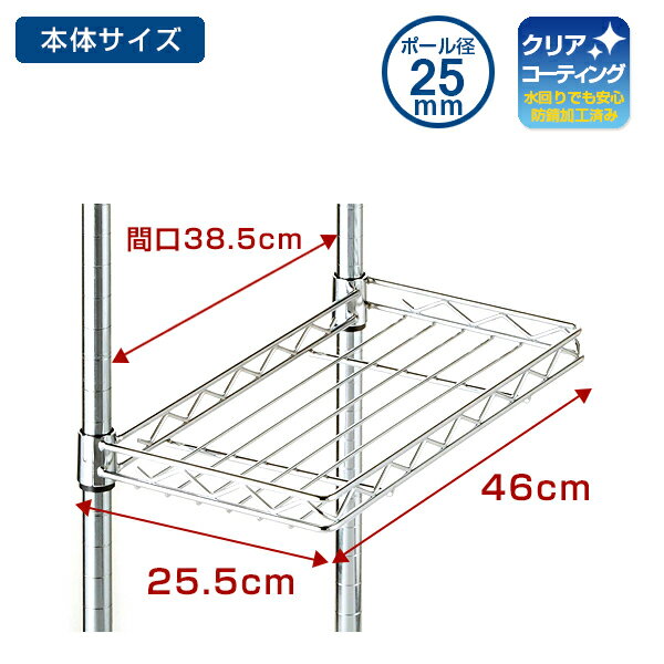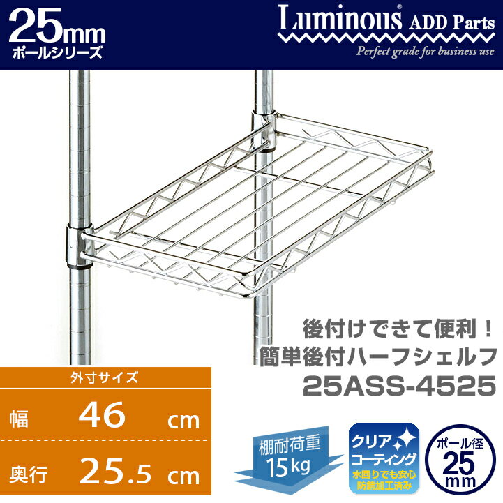 ラック スチールラック パーツ 幅45 奥行25モデル ポール径25mm メタル ラック スチールシェルフ メタル 棚 シェルフ 収納 スチール ラック luminous ルミナス 純正品 簡単後付ハーフシェルフ 25ass-4525