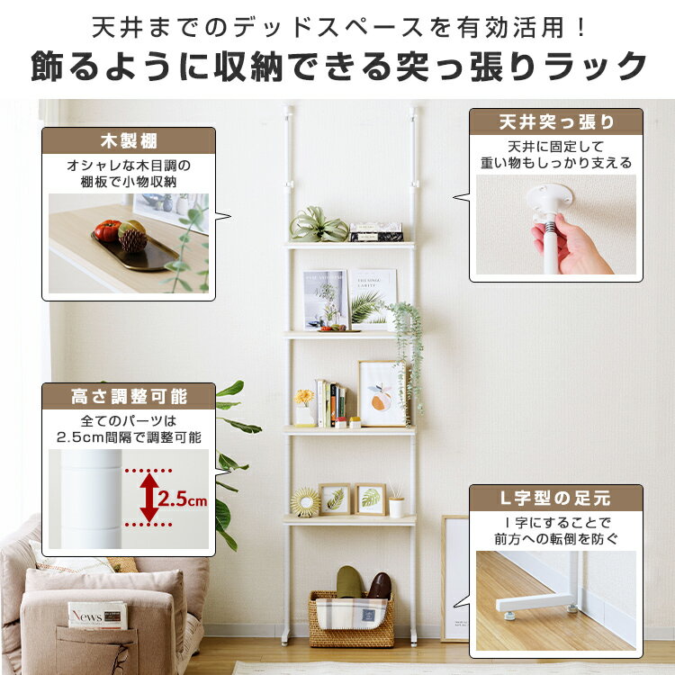 ルミナス ラテ 突っ張りラック 幅60 おしゃれ 木製 スリム キッチンラック ゴミ箱上収納 ランドリーラック 洗濯機対応 リビング キッチン収納 ゴミ箱ラック スチールラック 天井 つっぱり 壁面収納 白 北欧 かわいい ナチュラル 棚 耐震 ll60-4ht