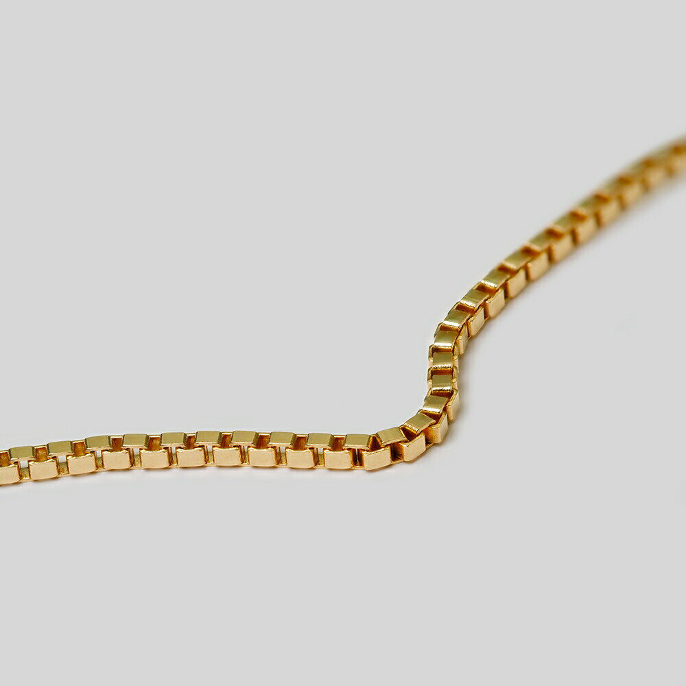 ロウ付けについてチェーン(鎖)の多くは、針金状の材料に対し切断と溶接の工程を繰り返すことにより作られています。チェーンを使った製品の多くは、チェーンの先端の留め具付近に丸環と呼ばれる丸い輪の部品が使用されておりますが、当店ではその丸環の口も溶接で閉じている為、大きな力が掛からない限りはチェーンが切れにくい仕様となっております。しかしながら、細いチェーンに関しましては貴金属の性質上、お取り扱いに十分ご注意下さい(貴金属は柔らかい金属です)。※当店での溶接はガスバーナーを用いる鑞付け(ろう付け)、放電による電気溶接、またはレーザー溶接で行っており、状況に応じて最適な方法で実施しております。ベネチアンチェーンは正方形のコマが連なったデザインの定番チェーン。キューブ状のパーツが密に連なったボリューム感のあるデザインが特徴で、丈夫で切れにくいチェーンのひとつです。また、構造上絡まりにくく、万が一絡まった場合でも解きやすいチェーンです。ベネチアンという名前は、イタリアの都市ベネチアの家々のボックス型の窓の形に由来していると言われていますが、リンクスチェーン、ボックスチェーンといった名称で呼ばれる事もあります。こちらのグラスチェーンは、シリコンを留めるパーツも含め全ての金属部分に無垢の貴金属を使用した高級感溢れる作りです。※イエローゴールドについてイエローゴールドとは純金に銀と銅等を混ぜ合わせたカラーゴールドの一種。純金に近い黄色みの強い色味が特徴で、ジュエリー業界で最も一般的な定番カラーです。商品情報チェーン部分のサイズ約 幅0.85mm×厚さ0.85mm×線径-mm長さ(シリコンパーツ除く)約 70cm重量約 4.5g前後素材(留め具含む)シリコン、無垢の18金イエローゴールド(日本製/刻印有り)付属品化粧箱、ポーチ、保証書備考・プレゼント用ラッピング可(ご注文時の画面でご指定下さい)※上記表の数値は参考値です、実際にはロットにより多少前後します。※地金相場等により販売価格を予告無く変更する場合がございます、ご了承下さい。18金 イエローゴールドの成分純金はそのままでは柔らかすぎる為、合金とすることでジュエリーとしての強度を持つことが出来ます。18金は全体の75%が金、残り25%に銀と銅、パラジウム等を含むことで美しい色あいと強度を保ちます。18金以外の純度の金製品も市場には流通しておりますが、18金は日本で最も普及しているジュエリーの主流です。金の含有量が多い18金は、他の金属と比べて変色や汚れ、錆びに強く、アレルギーによる肌荒れが起きにくい為、高級感のある輝きを末永くお楽しみ頂けます。※18金は一般的に金属アレルギーを起こしにくい素材ですが、体質や汗などによりアレルギー反応が出る場合もございます。なお、当店では同じ18金でも異なる色のゴールドを取り扱っており、デザインも種類豊富です、お好みやシーンに合わせてお選び下さい。金は男性、女性問わず人気があるので、特別なギフトや記念日の贈り物としてもお勧め致します。18金イエロー ベネチアン めがねチェーン 眼鏡 めがね用品 グラスコード メガネストラップ無垢の貴金属を自在に操る職人技術が活きた日本製の美しいジュエリー。保証書付きで安心、安全!ご自身へのご褒美、大切な方への贈り物に選ばれて15年・・性別年齢問わず、多くのお客様にご利用頂いております。是非お手元でその技術をご堪能ください。