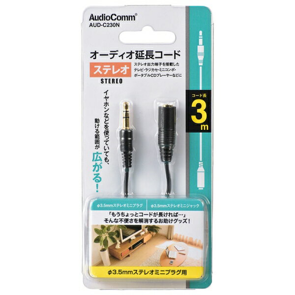 オーディオ延長コード (φ3.5mmステレオミニプラグ対応/3m/ブラック) (AUD-C230N)