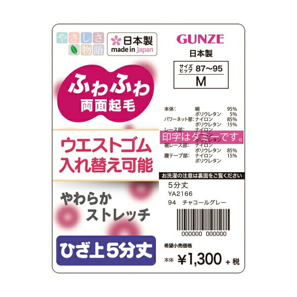 ギフトサービスについて 楽天国際配送対象店舗 (海外配送) Rakuten International Shipping【メール便(クリックポスト)の配送について】※こちらの商品は、[メール便(クリックポスト)]での発送となります。※他商品との同梱された場合は、[宅配便]での発送となり通常の送料が掛かります。※[他商品との同梱][代金引換][配達日時指定]でのご注文をお受けできません。※原則ポスト投函となります。通常の[宅配便]と違い配達までのお時間が掛かる場合があります。冬の下半身冷え対策に!あたたかい両面起毛のボトムです。見た目もふわふわ、穿いてもふわふわな肌ざわり。伸びもいいので穿いていてもラクチンです。7分丈は膝下です。膝が隠れるのであたたかい。腰ゴム通し穴:あり腰ゴム入れ替え:可一枚履き:不可着用シーズン:冬向け■ブランド名: GUNZE(グンゼ) やさしさ物語■サイズ:(M)バスト79cm〜87cm、身長154cm〜162cm(L)バスト86cm〜94cm、身長154cm〜162cm(LL)バスト93cm〜101cm、身長154cm〜162cm■生産地:日本■素材・成分:本体:アクリル55%、レーヨン35%、ナイロン5%、ポリウレタン5%レース部:アクリル、ポリウレタン、ナイロン■商品札:有り商品特徴一覧GUNZE(グンゼ)、YA2167、GUNZE(グンゼ) やさしさ物語、ファッション → レディースアパレル → 下着 → その他、4547531379909、4547531379930、4547531379961、4548366072027、4548366072034、4548366072041、4547531379923、4547531379954、4547531379985、通信販売、通販、販売、買う、購入、お店、売っている、ショッピング【GUNZE(グンゼ) やさしさ物語/片袋両面起毛 7分丈 [全3色×3サイズ]】広告文責(有)イースクエアTEL:0120-532-772冬の下半身冷え対策に!あたたかい両面起毛のボトムです。見た目もふわふわ、穿いてもふわふわな肌ざわり。伸びもいいので穿いていてもラクチンです。7分丈は膝下です。膝が隠れるのであたたかい。腰ゴム通し穴:あり腰ゴム入れ替え:可一枚履き:不可着用シーズン:冬向け■ブランド名: GUNZE(グンゼ) やさしさ物語■サイズ:(M)バスト79cm〜87cm、身長154cm〜162cm(L)バスト86cm〜94cm、身長154cm〜162cm(LL)バスト93cm〜101cm、身長154cm〜162cm■生産地:日本■素材・成分:本体:アクリル55%、レーヨン35%、ナイロン5%、ポリウレタン5%レース部:アクリル、ポリウレタン、ナイロン■商品札:有り※お客さま都合による、ご注文後の[キャンセル][変更][返品][交換]はお受けできませんのでご注意下さいませ。※当店では、すべての商品で在庫を持っておりません。記載の納期を必ずご確認ください。※ご注文いただいた場合でもメーカーの[在庫切れ][欠品][廃盤]などの理由で、[記載の納期より発送が遅れる][発送できない]場合がございます。その際は、当店よりご連絡させていただきます。あらかじめご了承ください。※リニューアル等により パッケージ、仕様、セット内容 が変更になる場合がございます。予めご了承下さい。【メール便(クリックポスト)の配送について】※こちらの商品は、[メール便(クリックポスト)]での発送となります。※他商品との同梱された場合は、[宅配便]での発送となり通常の送料が掛かります。※[他商品との同梱][代金引換][配達日時指定]でのご注文をお受けできません。※原則ポスト投函となります。通常の[宅配便]と違い配達までのお時間が掛かる場合があります。こちらの商品は【お取り寄せ(7〜10営業日以内に発送予定)】となります。あらかじめご了承くださいませ。
