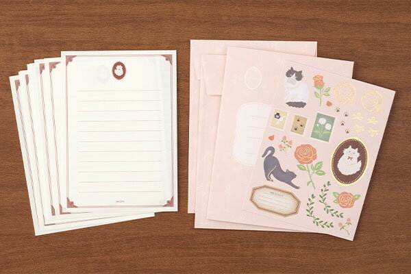 商品名 ミドリ レターセット コラージュ ネコ柄(86922006)【MIDORI レターセット かわいい デザイン おしゃれ】 メーカー国 日本 メーカー名 ミドリ / MIDORI 仕様 ■パッケージサイズ:高さ156mm×横幅122mm×厚さ5mm(PP袋入) ■便箋:高さ140mm×横幅100mm 9枚入 ■封筒:高さ150mm×横幅110mm 3枚入 ■シール(箔押し加工):1シート入 備考 ●シールで封筒をコラージュして楽しむレターセット輸入・デザイン文具 シールで封筒をコラージュして楽しむレターセット アンティーク風イラストのコラージュシールがたっぷりついたレターセットです。封筒にシールをコラージュして、世界に一つだけの手紙が贈れます。 便箋9枚、封筒3枚、コラージュシール1シートが入っています。 お土産に添えて書く手紙や、お祝いのシーンに添えるカードとしてなど、様々な用途でお使いいただけます。 ネコ柄は、白いふわふわの毛並みのネコやバラの花などがモチーフになったデザインで、アンティークな雰囲気を感じさせる柄です。 シールには金箔押しが施されており、上品な印象を与えてくれます。 コラージュがしやすいよう、封筒には小さなバラのパターンを控えめにあしらっています。便箋は長い文章を書くのが苦手な方にも使いやすいサイズです。 ↓↓↓ミドリ レターセット コラージュのシリーズはこちらのリンクからどうぞ↓↓↓ 【トリ柄】 【トリ柄】【86921006】はこちら!! 【ネコ柄】 【ネコ柄】【86922006】はこちら!! 【文具柄】 【文具柄】【86923006】はこちら!! ↑↑↑"ミドリ"の全商品ラインナップはこちらのリンクをクリック!!↑↑↑ ※"ミドリ"の全商品ラインナップはコチラのリンクからご覧いただけます。ミドリ製品の特集ページへ移動します!
