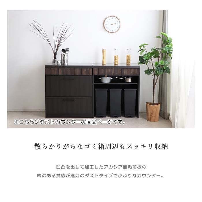 商品名 《TOHMA/東馬》RESE(レセ) 80カウンター ダスト サイズ・重量 サイズ:W800×D450×H900- 素材 前板:アカシア無垢(オイル塗装) 天板:ステンレス 本体:プリント化粧板 脚部:強化紙化粧板 生産国 日本 カラー - 商品様式 - 備考 凹凸を出して加工したアカシア無垢前板の味のある質感が魅力の ダストタイプで小ぶりなカウンター。 散らかりがちなゴミ箱周辺もスッキリ収納! 天板はステンレス仕様。 メンテナンスが楽チンで清潔に保てます。 ※ラッピング・熨斗には対応しておりません ■お買い求めにあたってのご注意■ お客様からのご注文後、メーカーに在庫の有無を確認・発注させて頂きます。 ご注文が集中した場合など、注文できる状態であってもすでに売り切れである場合がございます。 承ったご注文は可能な限りお届けするよう努めておりますが、やむを得ず入荷をお待ち頂く場合や、 お届けできない場合がございます。予めご了承下さい。 お届けが遅れる場合や、お届けが出来ない場合はメールにて連絡させて頂いております。 当店からのご注文確認メールを必ずご確認くださいませ。 不良品・初期不良以外でのご返品・ご交換はお断りさせて頂いております。 ご注文前にサイズ・色・等をよくご確認の上ご注文くださいませ。 ご使用のモニターの加減により、実際のお色とは異なる場合がございますのでご了承ください。 ほぼ全ての商品がメーカー直送です。出荷元指定の運送会社が利用されます。 運送会社の指定はできませんのでご了承ください。 到着日は天候や事故、運送会社の荷物混雑状況により前後する場合がございます。なにとぞご了承くださいませ