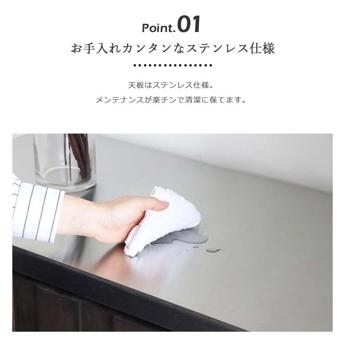 [大型]《東馬》RESE(レセ) 80カウンター ダスト 大収納 ヴィンテージ風 ステンレス天板 キッチン 台所 オシャレ 80cm お手入れ簡単 男前インテリア 54676980 【沖縄・離島配送不可】【A:北海道 別途】