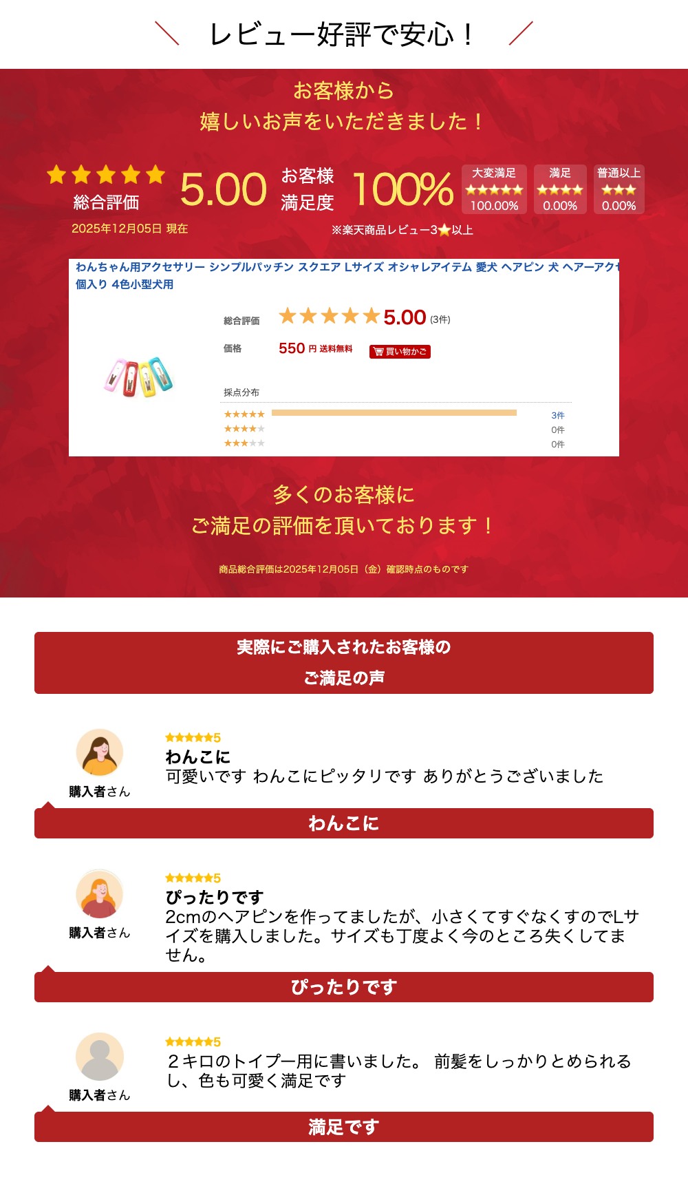 シンプルパッチン☆スクエア ◆カラー◆ピンク、レッド、イエロー、ターコイズ4色ワンセットor各カラー×4【サイズ】S:約H7mm×20mmL:約H10mm×29mmmade in korea ※お客様がお使いのモニターの発色の具合によって実際のものと色が異なる場合がございます。 ◆ご注意◆当店は実店舗でも販売しております。 在庫数の更新は随時行っておりますが、お買い上げいただいた商品が、品切れになってしまうこともございます。 その場合、お客様には必ず連絡をいたしますが、万が一入荷予定がない場合は、キャンセルさせていただく場合もございますことをあらかじめご了承ください。 関連商品わんちゃん用アクセサリー シンプルパッチン スクエア パステルカラー ...わんちゃん用アクセサリー ヘアアクセ デニムバレッタ オシャレアイテム...わんちゃん用アクセサリー シンプルパッチン スクエア Sサイズ トップ...550円550円440円わんちゃん用アクセサリー ボーン型シンプルパッチン フラワー 骨型 オ...わんちゃん用アクセサリー 犬 ヘアアクセ パッチン フラワーパッチン ...わんちゃん用アクセサリー シンプルパッチン スクエア パステルカラー ...440円440円440円わんちゃん用アクセサリー ボーン型シンプルパッチン ドット 骨型 オシ...わんちゃん用アクセサリー ヘアアクセ パッチン フラワーパッチンミニ起...ハロウィンアクセサリーリボン 犬用品 ヘアアクセサリー ヘアゴム キ...440円440円550円わんちゃん用アクセサリー シンプルパッチン トライアングル パステルカ...わんちゃん用アクセサリー シンプルパッチン トライアングル Sサイズ ...わんちゃん用アクセサリー ストロベリーマシュマロリボンバレッタ パステ...440円440円770円わんちゃん用アクセサリー シンプルパッチン スクエア Lサイズ オシャレアイテム 愛犬 ヘアピン 犬 ヘアーアクセ 4個入り 4色小型犬用 毛の長いワンちゃんにオススメアイテム♪ シンプルパッチンスクエア Lサイズ ※原価高騰により2022,8月より価格改定させていただきます。シンプルだから使い勝手がいい!!単体ではもちろんデザイン性のあるおリボンやバレッタなどと合わせてもOKCOLLARピンク、レッド、イエロー、ターコイズ4色ワンセットor各カラー×4SIZES:約H7mm×20mmL:約H10mm×29mmmade in korea 【在庫がある場合】12時までのご注文で当日出荷いたします。 1