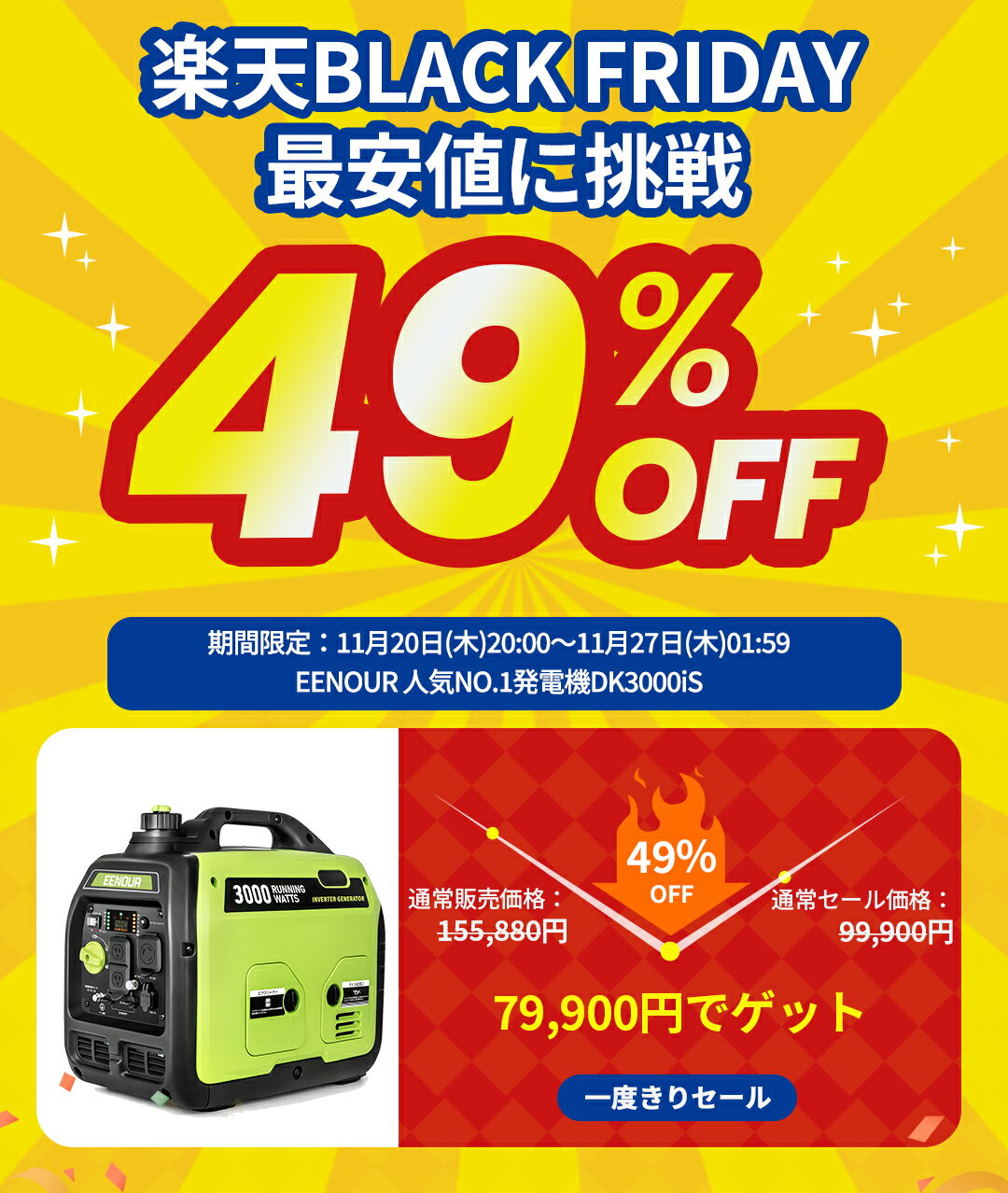 【Black Friday ラスト24H 最大49%OFF+P3倍】EENOUR DK3000iS DK2500iS 発電機 最大3.2kVA 2.5kVA 【低騒音型標識】 インバーター 発電機 防音 発電機 ガソリン 発電機 ポータブル 発電機 エンジン 災害用 停電 正弦波 台風 防災用品 キチンカー 工事用 移動販売 超軽量