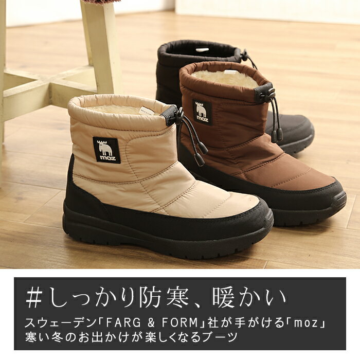 \ 通常5,390円⇒4,890円/moz スノーブーツ モズ レディース あったか 雪国 北海道 滑らない 防寒 防水 ブーツ ショート あたたかい ショートブーツ ファー もこもこ 軽量 軽い 歩きやすい キルティング キルト
