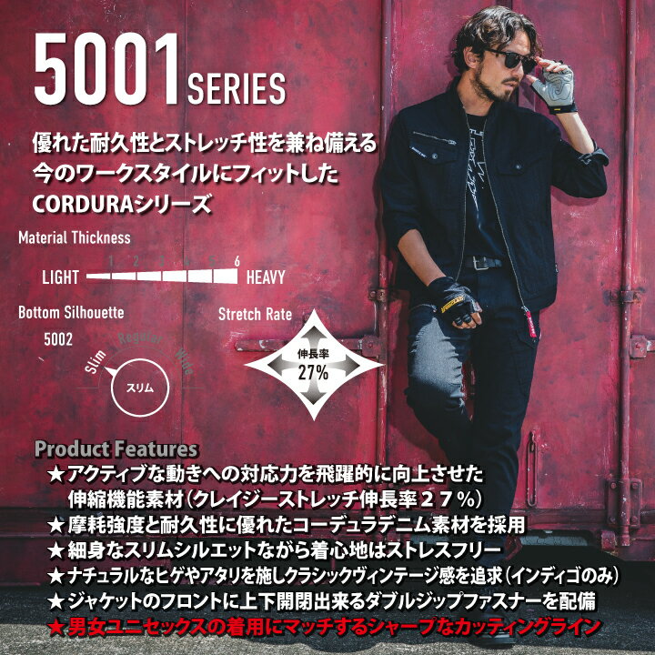 バートル カーゴパンツ デニム 5002 作業着 ストレッチ メンズ レディース ズボン ジーンズ ジーパン コーデュラ 男女兼用 CORDURA DIY オールシーズン 秋 冬 春 作業服 5001 シリーズ BURTLE 人気 小さいサイズ 大きいサイズ【SS-7L】