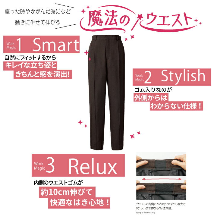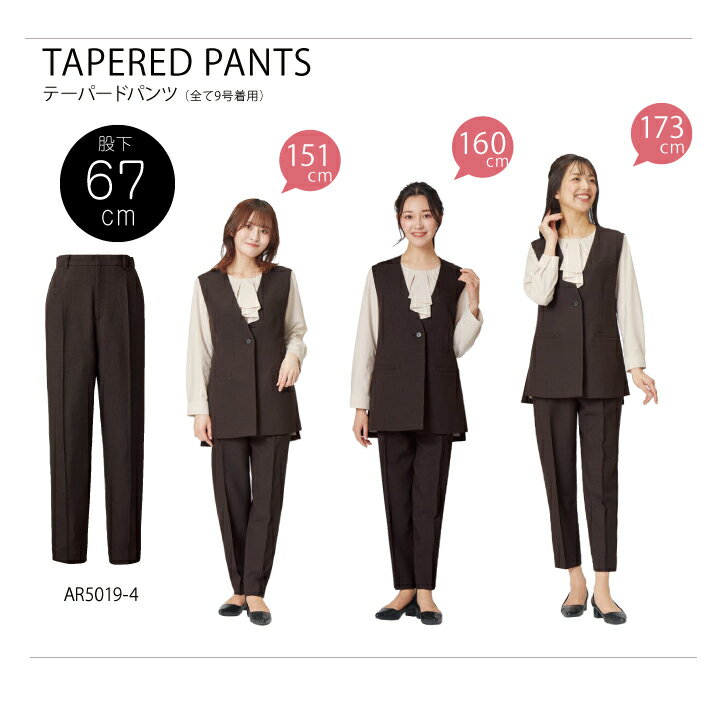 テーパード パンツ 女性用 ウエストゴム AR5019-3 AR5019-4 グレー ブラウン レディース 魔法のウエスト 裾上げ済 ストレッチ ホームウォッシャブル オフィスカジュアル 会社 制服 ユニフォーム アルファピア【5〜17号】 セットアップ 可 チクマ
