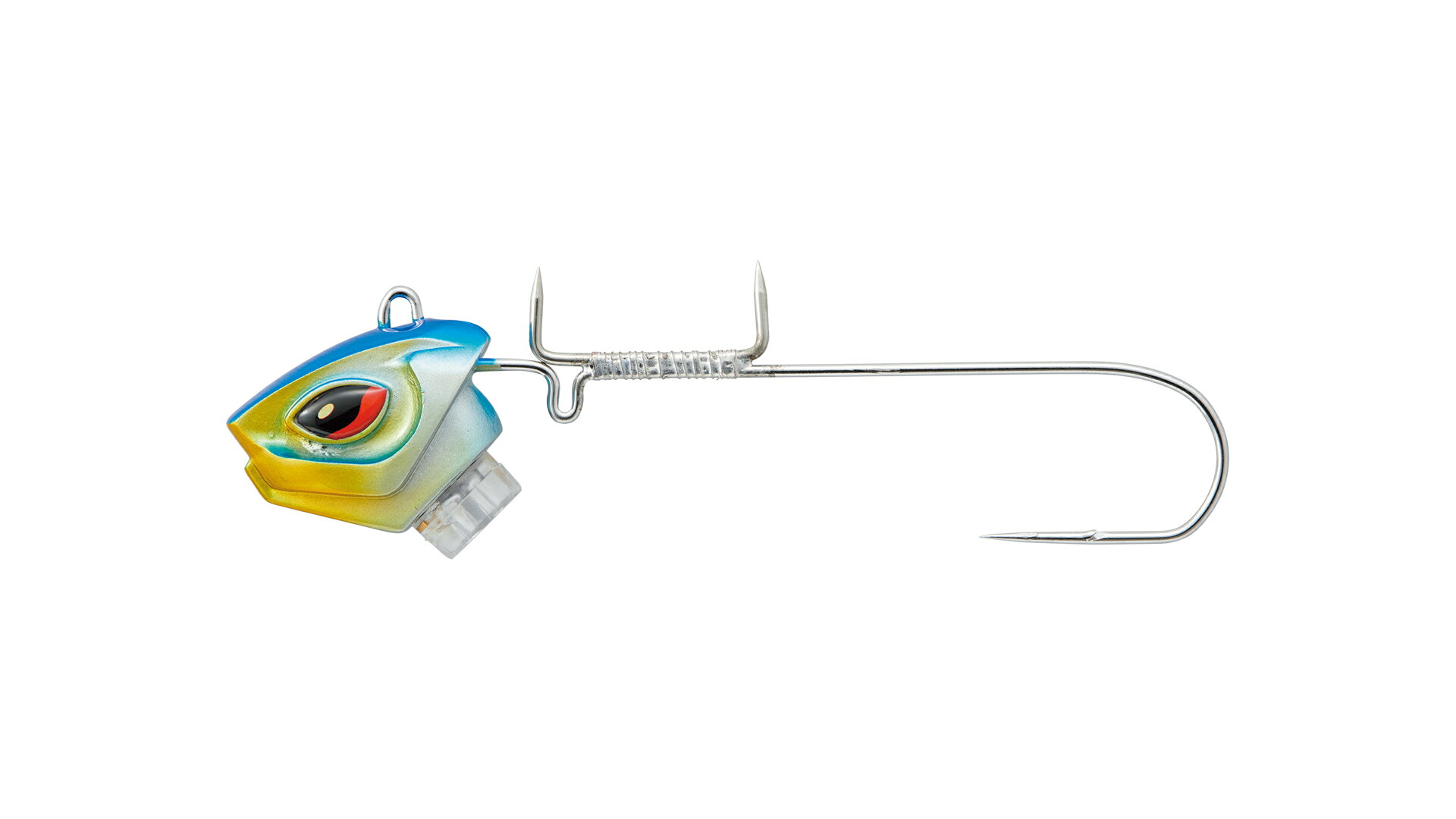 LEDの赤色点滅光が太刀魚を寄せる!! ・海水につけると自動点滅 ・水中でテンヤの姿勢を保つヘッドデザイン ・エサ巻きステン線付き ・耐水圧300m 製品仕様 カラー イワシ / フルグロー / ゼブラ / パープル サイズ(mm) 約150 × 40 × 27 重量(電池含む) 40号 / 約150g 発光部 赤色点滅LED × 1個 使用電池 ピン型リチウム電池BR311 × 1個 電池寿命 連続点滅約6時間