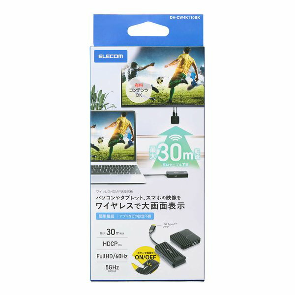 【25日は24時間限定クーポン配布】ELECOM エレコムワイヤレスHDMI送受信機(1対1) DH-CW4K110BK(2658482)送料無料