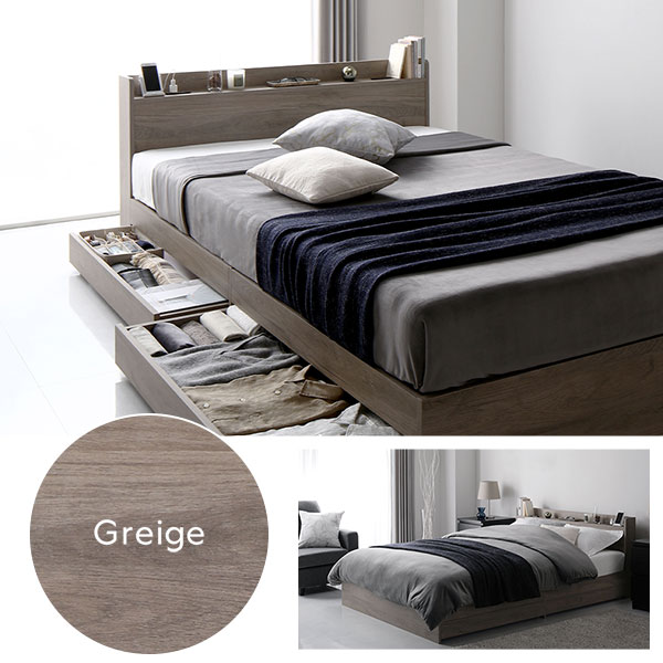 レビュー投稿で次回使える2000円クーポン全員にプレゼント■サイズ・色違い・関連商品サイズバリエーションシングルベッドセミダブルベッドダブルベッドマットレスセットバリエーション本体フレームのみ本体フレーム+ポケットコイルマットレスセット本体フレーム+ボンネルコイルマットレスセットカラーバリエーションブラックブラウングレージュナチュラルホワイト■商品スペック【ベッドフレーム本体】■サイズ(約) シングル:幅97×長さ210×高さ69cm セミダブル:幅120×長さ210×高さ69cm ダブル:幅140×長さ210×高さ69cm 床板までの高さ:24cm 引き出し有効内寸:幅92×奥行37×高さ8cm ※シングルサイズは床板4分割、セミダブル・ダブルサイズは床板8分割■材質 合成樹脂化粧パーティクルボード■カラー ブラック、ホワイト、ナチュラル、ブラウン、グレージュ、ストーングレー、ヴィンテージブラウン■機能 シングル、セミダブル:2口コンセント(1500W)×1(右側) ダブル:2口コンセント(1500W)×2(左右両側に各1個) コンセントコード長さ:(約)1.8m■耐荷重(約) シングル:120kg セミダブル、ダブル:200kg■生産国 中国■梱包サイズ・重量(約) 梱包数:3 シングル:(1)101×28×14cm・16.1kg、(2)100×44×11cm・16.6kg、(3)96×50×11cm・12.9kg セミダブル:(1)124×28×16cm・22.8kg、(2)100×44×11cm・16.6kg、(3)63×50×21cm・15.7kg ダブル:(1)144×28×16cm・25.6kg、(2)100×44×11cm・16.6kg、(3)73×50×21cm・18.5kg■商品に関するご注意・ホワイト、ブラックも木目のあるデザインになります。・本商品はボンネルコイルマットレス・ポケットコイルマットレスの使用を前提に設計されています。・床板の上に直接乗ったり、薄手のマットレスや布団で使用すると、床板が破損する恐れがあります。・ベッドの上で立ったり、歩いたり、飛び跳ねないでください。怪我をしたり破損の原因になることがあります。・商品写真はダブルサイズ、厚さ15cm前後のマットレスを使用しています。(一部の写真を除く) 実際の大きさはスペックをご確認ください。・各サイズ・重量は概算になります。・シングルサイズは床板4分割、セミダブル・ダブルサイズは床板8分割です。・付属している緩衝シールは使用を続けると劣化します。市販の緩衝シールなどに交換をしてください。・床板・引き出し底板の色味は画像と異なる場合があります。・本商品はお客様組立品です。プラスドライバーをご用意ください。 ‐2人以上での組み立てをおすすめします。 ‐商品の組み立て開始前に部材不足、破損がないか必ずご確認ください。・製造の都合上、粉塵のようなものが付着している場合がございます。 人体に影響のあるものではございませんが、気になる場合は乾いた雑巾等で乾拭きをしてご使用ください。・開封した際に、製造時に使用した塗料や接着剤の臭気が残っている場合があります。化学物質に敏感な方はまれにアレルギー症状を起こす場合もありますので、開封直後は部屋の換気を十分に行ってください。よく絞った布で水拭きすると臭いが軽減される場合もあります。・本商品を壁につけて設置すると壁に傷をつけたり、色移りやカビが発生する可能性があります。必ず少しすきまを開けて設置してください。・家庭でのご使用を目的としています。業務用でご使用しないでください。・画像や商品情報には、色違いやサイズ・セット違いの商品が載っている場合がございます。ご注文前に色・サイズ・セット内容のご確認をお願いいたします。・写真の色調はモニターの機種や設定により実際の商品と異なる場合があります。・製品のデザイン・仕様・梱包は予告なく変更することがございます。あらかじめご了承ください。【マットレス】・2層ポケットコイルマットレス『Ni-Sou ニソウ』■サイズ(約) シングル:幅97×長さ195×高さ21cm セミダブル:幅120×長さ195×高さ21cm ダブル:幅140×長さ195×高さ21cm■詰め物(コイル) 上段:線径1.8mmポケットコイルスプリング、SWRH72B-硬鋼線C種 下段:線径2.0mm+2.2mmポケットコイルスプリング、SWRH72B-硬鋼線C種 コイル数/シングル:930、セミダブル:1178、ダブル:1364■詰め物(その他) 樹脂綿、ウレタンフォーム、不織布■外装生地の組成 ポリエステル 100%■カラー ホワイト■生産国 中国■梱包サイズ・重量(約) 梱包数:1 シングル:37.5×37.5×101cm・28.1kg セミダブル:37.5×37.5×124cm・34.6kg ダブル:37.5×37.5×144cm・39.9kg ※片面仕様ですので、裏面でお使いいただくと生地が破れることがございます。ご注意ください。・国産ポケットコイルマットレス『KIYORA キヨラ』(レギュラー)■サイズ(約) シングル:幅97×長さ195×高さ23cm セミダブル:幅120×長さ195×高さ23cm ダブル:幅140×長さ195×高さ23cm■詰め物(コイル) 線径2.1mm+2.2mmポケットコイルスプリング コイル数/シングル:465、セミダブル:589、ダブル:713■詰め物(その他) 抗菌綿(マイティトップ)、ウレタンフォーム、不織布■外装生地の組成 ポリエステル40%、アクリル60%■カラー ブラック■生産国 日本■梱包サイズ・重量(約) 梱包数:1 シングル:28×28×101c